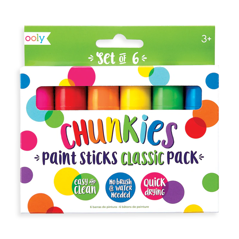 With Chunkies Paint Sticks, kids can create colorful creations without any mess. Chunkies are easy to hold and just the right size for little hands. And, the quick-drying paint formula is encased in twist-up barrels, no brush or water needed!