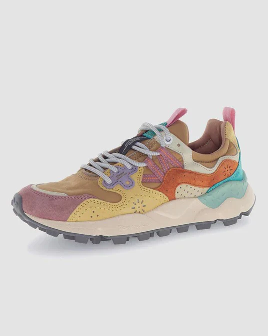 Step out in style with the Flower Mountain Yamano 3 Sneaker for women, featuring a fun mix of technical fabric, colorful suede inserts, and eye-catching animal print. Reinforced eyelets and trekking laces add a sporty touch, while side perforations keep your feet cool. The removable cork insole is shaped to fit your foot perfectly and fights odors with its antibacterial treatment. Lightweight rubber soles with indented tread make every step feel like a breeze—perfect for playful adventures all day long!