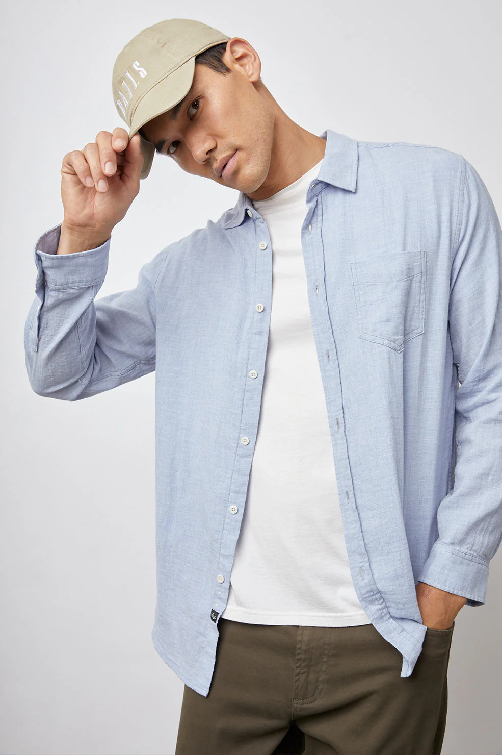 Super soft, breathable cotton fabric mixed with a relaxed body shape makes the Wyatt the perfect Southern California inspired button-down. A classic shirt featuring a single patch pocket at chest.